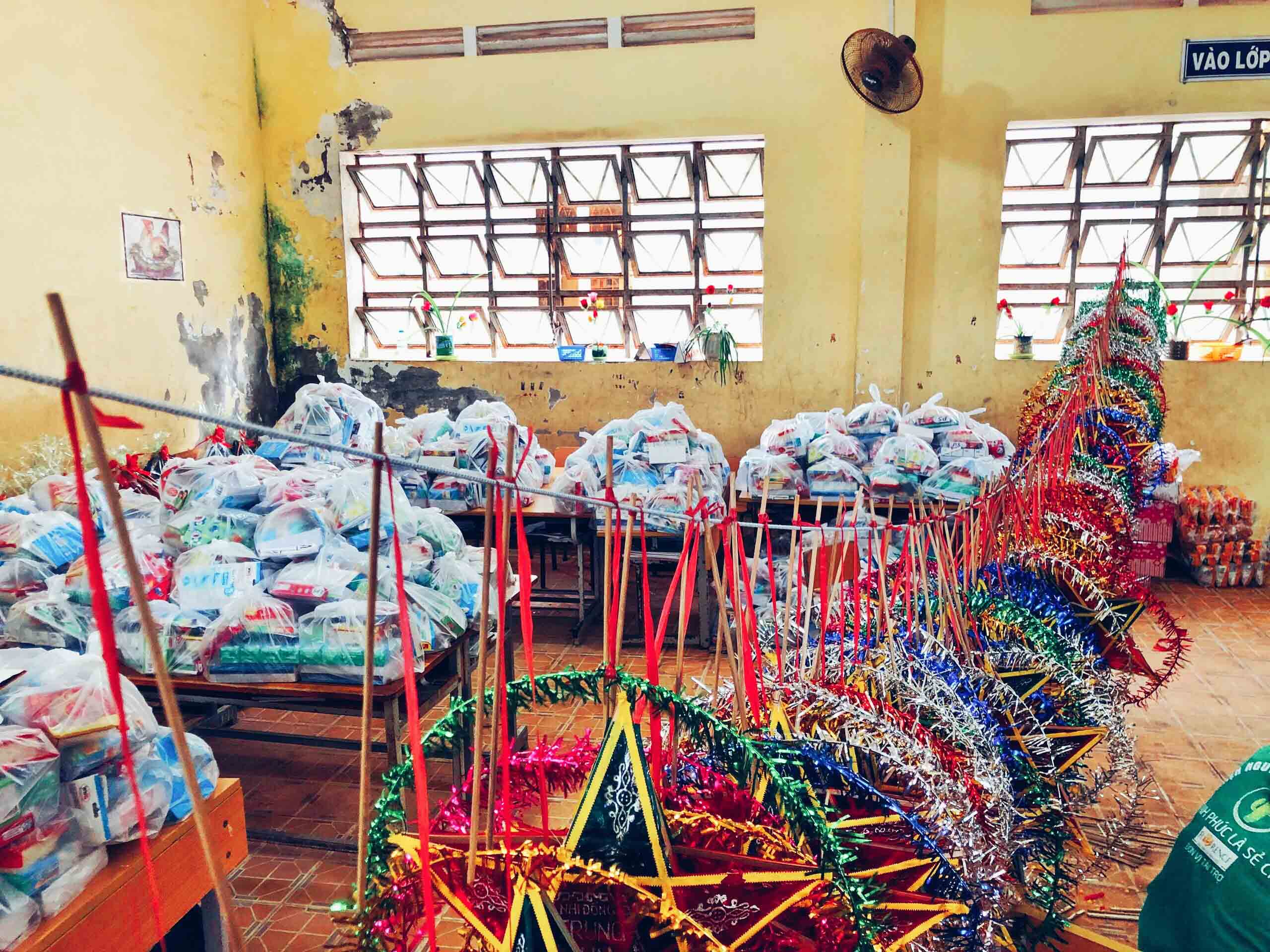7h15, XRX bắt đầu phân công công việc cần làm trong buổi sáng, bao gồm: Làm lồng đèn ông sao siêu to khổng lồ, chuẩn bị quà tặng, học bổng, chuẩn bị các trò chơi, dàn dựng sân khấu và tặng quà cho 20 hộ nghèo. Ghiền review may mắn được phân công đi tặng quà cho 05 hộ khó khăn trong xã (một phần quà bao gồm 10 kg gạo, các loại gia vị nấu ăn như đường, muối, dầu ăn, nước mắm,…). Gặp gỡ và nói chuyện với các cô các chú (đều đã ngoài 60, bị bệnh, con cái lên Bình Dương làm để cháu ở nhà, không có thu nhập ổn định), đặc biệt là người đồng bào Khmer, mình mới thấm thía được sức mạnh ghê gớm của cái nghèo và cảm nhận được sâu sắc hơn ý nghĩa của việc trao quà này.