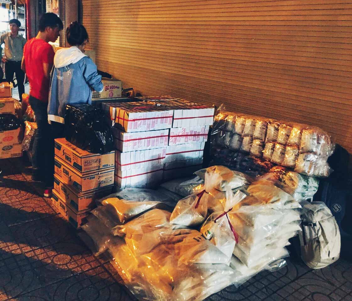 Đúng 21h30 ngày thứ 6, các bạn tình nguyện viên đã có mặt đông đủ tại vị trí tập kết quà và đón xe – 132 E Cách Mạng Tháng Tám, Phường 10, Quận 3. Ngồi nói chuyện làm quen với nhau tí xíu, đến 22h00, các bạn nhanh chóng bốc dỡ đồ đạc của chuyến đi và sắp xếp gọn gàng lên xe để di chuyển xuống xã Phú Tâm – Châu Thành – Sóc Trăng. Do số lượng tình nguyện viên là 26 người và đường đi đến điểm trường rất nhỏ nên nhóm lựa chọn sử dụng xe 29 chỗ, tuy nhiên với lượng quà rất nhiều nên việc ngồi và đi lại trên xe cũng không thoải mái lắm.