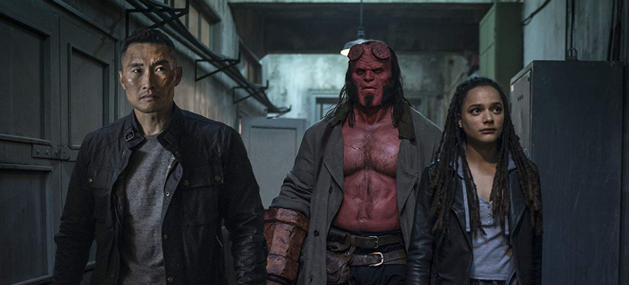 Diễn xuất: Mình không đánh giá cao phần diễn xuất của phim, có lẽ một phần là do các nhân vật nói nhiều quá, phần còn lại là do tối quá, đâu thấy gì đâu mà đánh giá diễn xuất được. Nói về nhân vật Hellboy do David Harbour thể hiện. Cảm giác Hellboy phần này cứ già già thế nào ấy các bạn ạ với khó tạo được thiện cảm với người xem do việc xây dựng tính cách của anh không quá rõ ràng nên nhân vật này chưa đủ ấn tượng. Chưa kể do tạo hình nhân vật nên khuôn mặt anh khá đơ cứng và không lộ rõ biểu cảm nào.