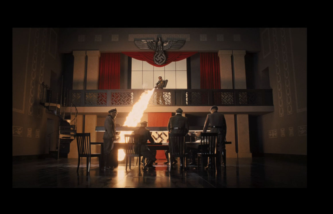 Đêm trở về Mỹ, Rick cùng Cliff đi nhậu tới nửa đêm để chia tay tình bạn suốt bấy lâu. Đến nửa đêm thì về nhà, anh ra hồ bơi phía sau say sưa nghe nhạc cho tới khi có một cô gái áo đen lao ra từ cửa kính, cầm súng trong hoảng loạng và tiến tới hồ bơi. Anh sợ quá và biết chuyện chẳng lành nên đã chạy vào nhà kho lấy khẩu súng phóng lửa – đạo cụ từ bộ phim trước của anh và nướng chín kẻ lạ mặt như cảnh diễn của anh. Hóa ra nhà của anh bị 3 kẻ cuồng tín phong cách Hippie tấn công nhưng anh và Cliff đã cho chúng về chầu trời. Sau khi mọi chuyện xong xuôi, nhà hàng xóm bắt chuyện với anh để hỏi thăm và mời anh qua nhà chơi.