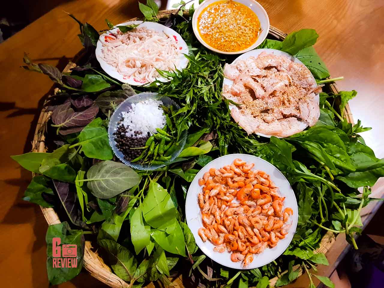 Vừa qua khỏi đèo, các bạn sẽ thấy một quán ăn với tên gọi là Phố Núi. Lạnh và đói nữa, nên Ghiền review và nhóm bạn liền ghé ngay vào quán như những kẻ khát khô cổ tìm được ốc đảo trên sa mạc nóng chảy mỡ vậy í. Trời đất ơi, món ăn ở đây ngon không có gì diễn tả luôn ấy các bạn ạ. Tụi mình ăn hết 2 con gà nướng, 2 dĩa rau rừng và 10 ống cơm lam với giá quá rẻ, chỉ 660k/ 10 người mà vẫn còn thòm thèm nhưng ăn dữ quá nên quán hết đồ để bán luôn.