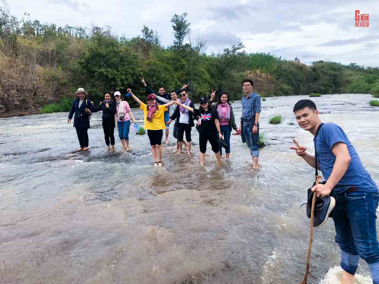 À, nhóm mình cũng đã được trải nghiệm cảm giác băng qua những con đường đất đỏ gập ghềnh bằng xe công nông thô sơ. Mười mấy người ngồi trên xe, trong thời tiết dịu mát và gió thổi nhẹ nhẹ đung đưa hàng cỏ lau 2 bên đường thực sự phê như off road bằng xe địa hình, dù cho mông bị dập lên dập xuống nhưng vui thì miễn bàn. Tụi mình đến một thác nước nhỏ, lội chân băng qua làn nước mát lạnh, chơi một vài trò chơi nhóm thú vị dưới nước và ngồi nhâm nhi cọng mía ngọt lừ của miền núi cao. Cảm giác vô lo, vô nghĩ, thoái mái và yêu đời chiếm trọn tâm trí Ghiền review lúc đó á.
